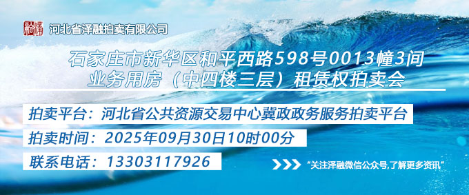 - 石家莊市新華區(qū)和平西路598號0013幢3間業(yè)務用房(中四樓三層)租賃權拍賣公告20250930