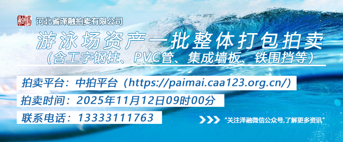 - [拍賣公告]游泳場資產(chǎn)一批(含工字鋼柱、PVC管、集成墻板、鐵圍擋等)整體打包拍賣20251112